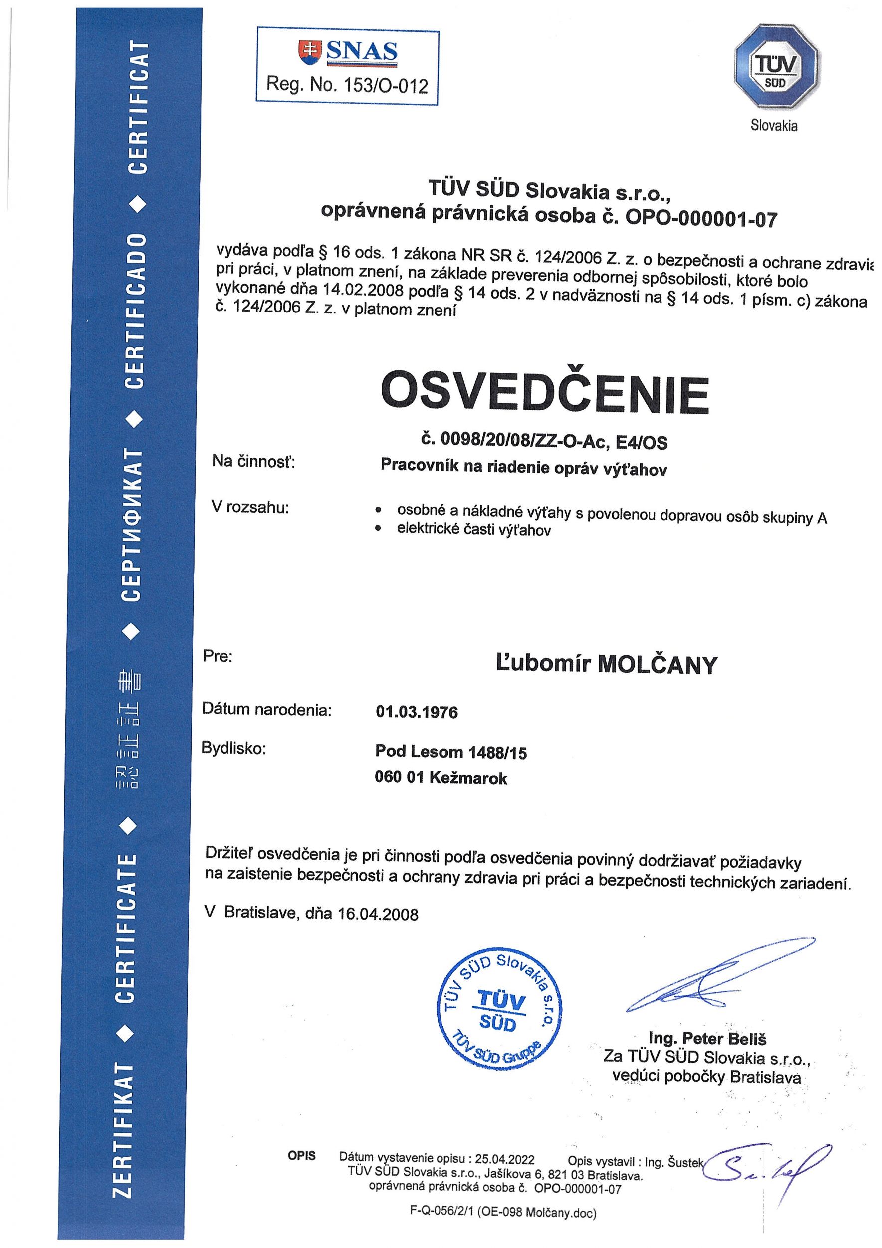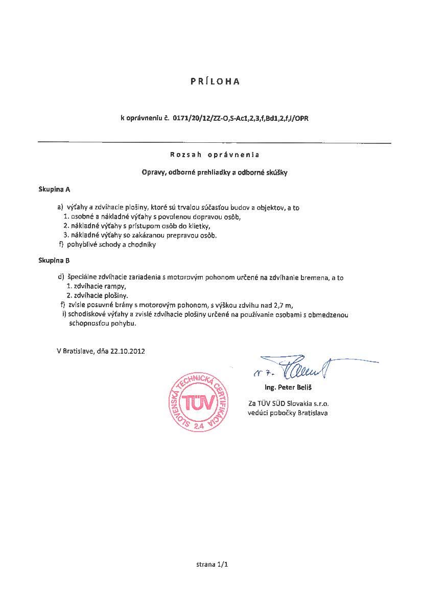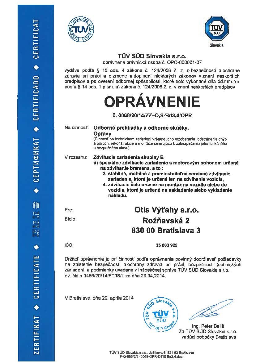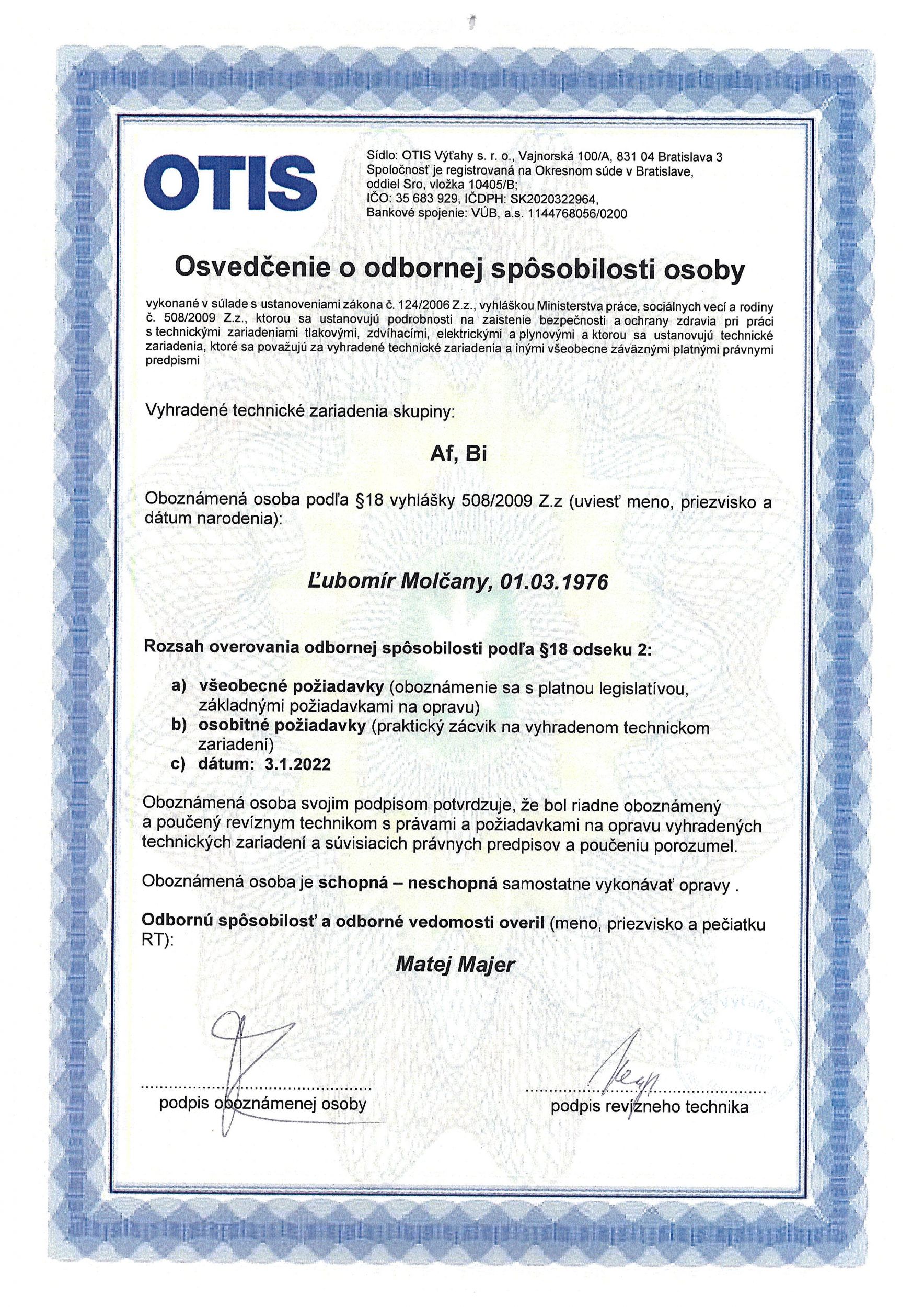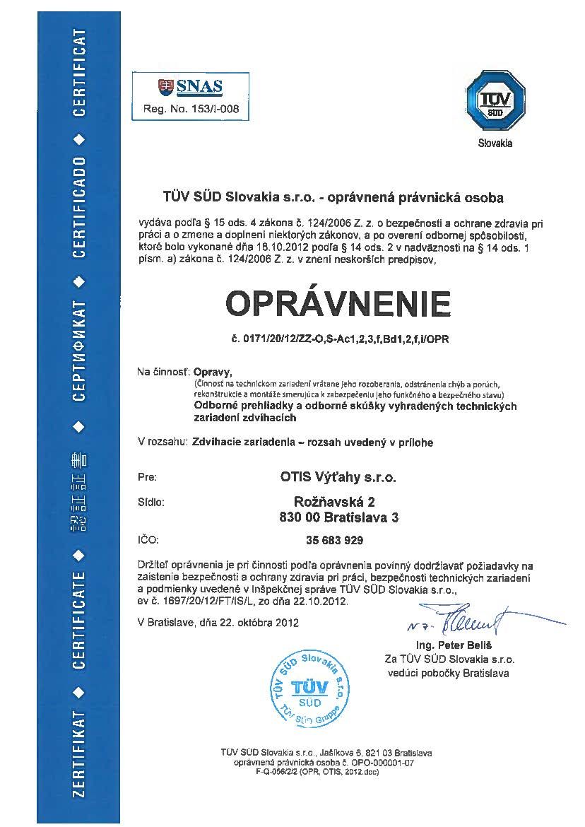 | Názov OR/ŽL: | OTIS Výťahy, s.r.o. |